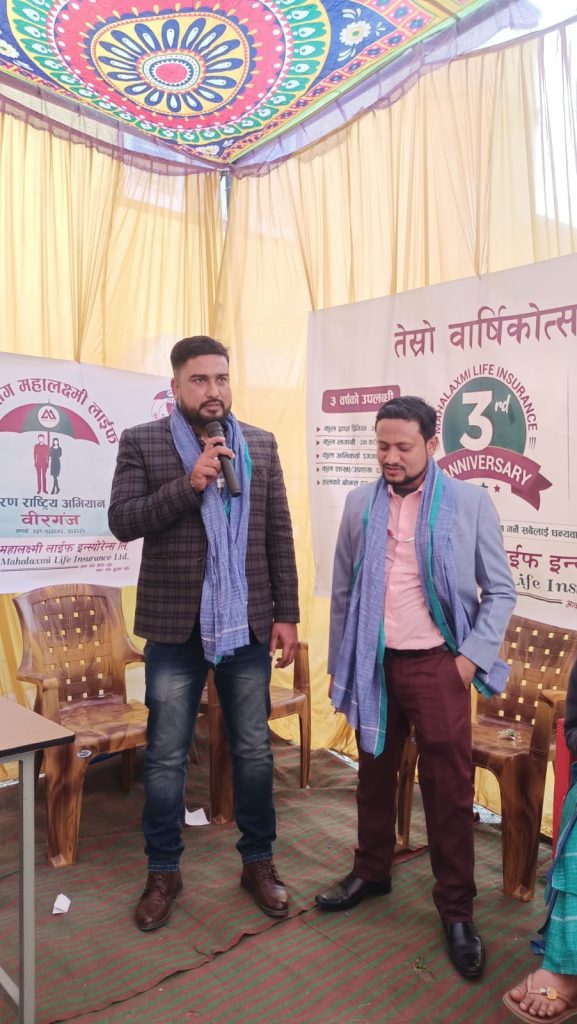 बिरगंज – महालक्ष्मी लाइफ इन्सुरेन्स को DCEO रामेश्वर श्रेष्ठ को प्रमुख अतिथित्वमा र महालक्ष्मी लाइफ इन्सुरेन्स बिरगंज ब्रान्च को आयोजनामा अफिस कै प्राङ्गनमा एजेन्सी मोटीभेशनल कार्यक्रम समपन्न भएको छ